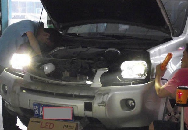 以前奇骏装过一套透镜,效果挺一般,最近发现改Q5小糸的人越来越多,跟风一把,于是奇骏又改装一次,拆杠,拆灯~装灯,调试前前后后花了5个多小时,终于成功,猫头鹰店里师傅们工作挺认真,改好后刚好天已黑,路上跑了一圈,确实有大幅度提升。