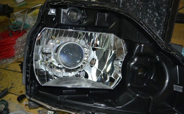 大灯不是很亮,晚上行驶时看的眼睛疼,朋友只好去汽配城花了几百元换衣一对H4的氙气灯,当时装了氙灯后感觉很亮,但是一到晚上开近光感觉灯光提高了不少,但是散的很厉害,经常被人误认为开了远光而遭人不停闪光。跑长途是开远光感觉没有原来的那么亮。咨询了车友,想奇骏这种远近光一体的 改双光透镜才是王道。看到本人改了双光透镜后,试了一番感觉不错,准备抽空把大灯改装一番。