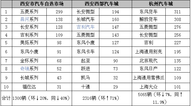 全国汽车市场2011年6月份销售汽车排行前十名 单位:辆